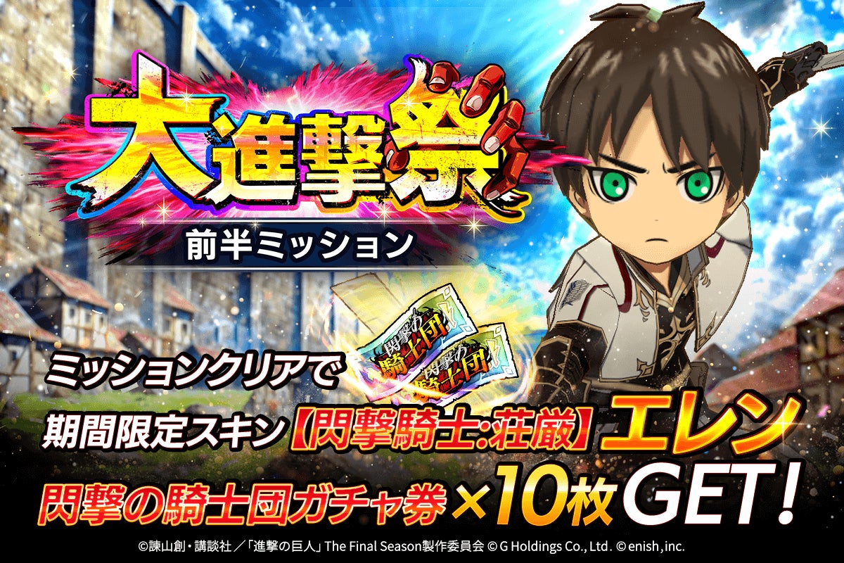 イベントでは、限定アクリルスタンドがもらえるキャンペーンや、エレンの限定衣装がもらえるミッションなどが開催されます。