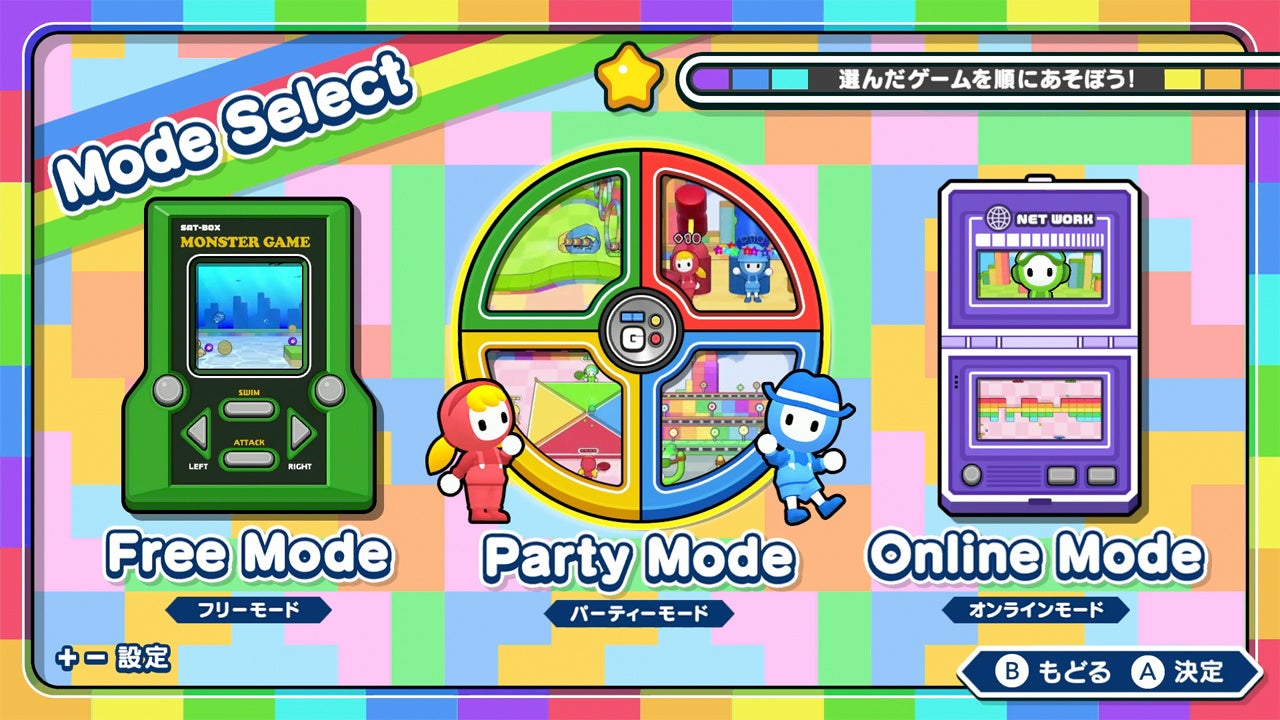 パーティモードでは、選んだゲームを順番にプレイしてチャンピオンを目指します。