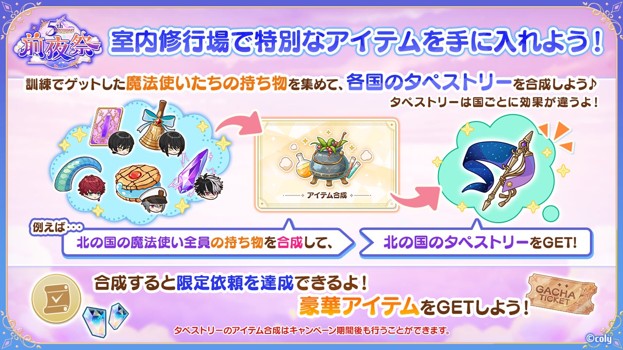 アプリ内では、5周年記念イベント「魔法舎の森」が開催され、期間限定ステージや依頼、ガチャなどが登場します。