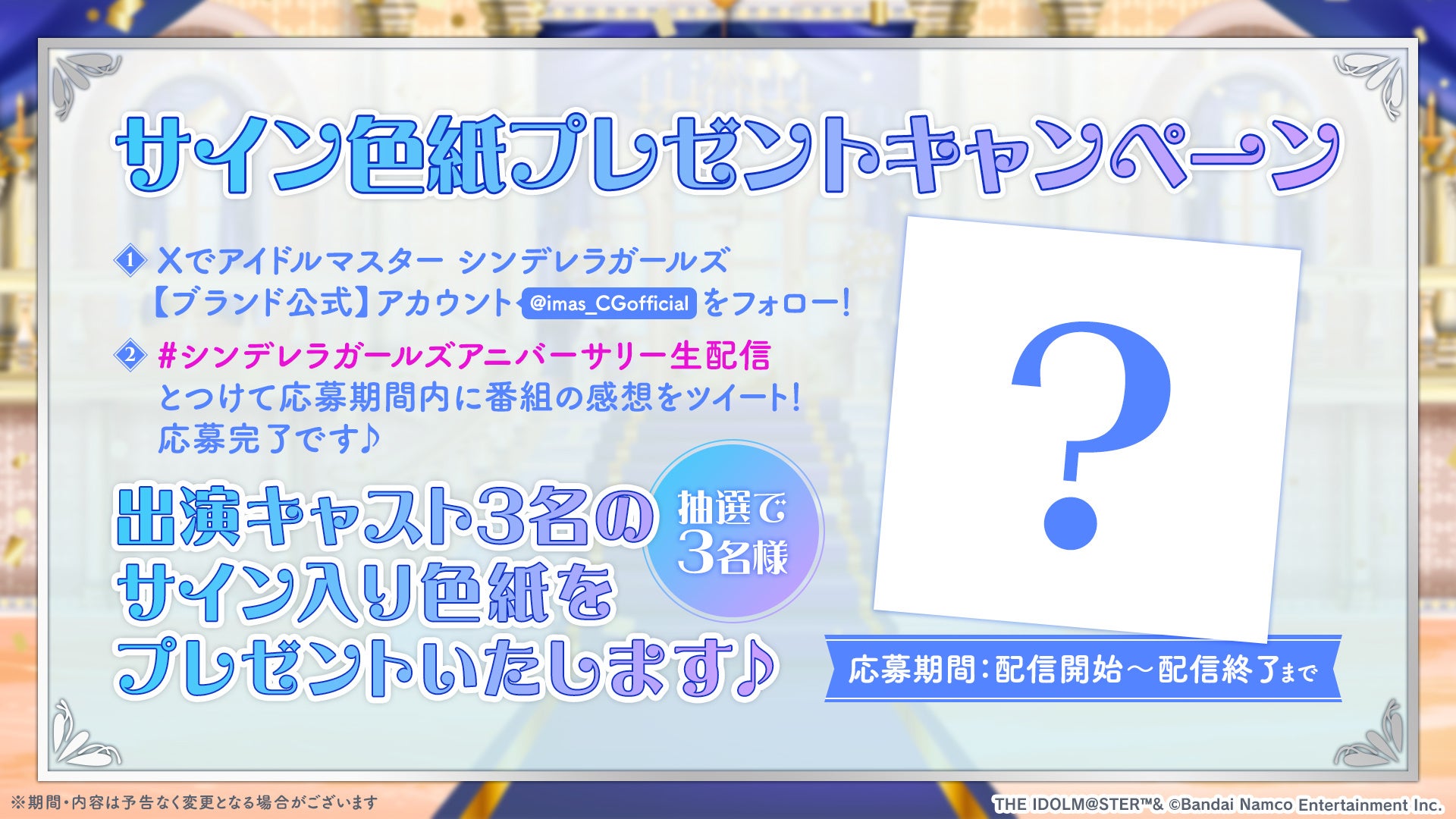 アイドルマスター シンデレラガールズの生配信『THE IDOLM@STER CINDERELLA GIRLS アニバーサリー生配信 ~NEXT STEP!!!~』が11月26日(火)に配信決定。