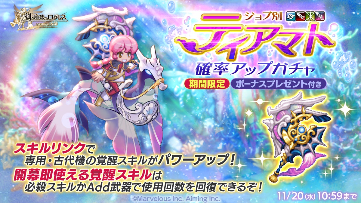 • ジョブ別 ティアマト確率アップガチャ」「ジョブ別 四神の専用武器確率アップガチャ」販売中!