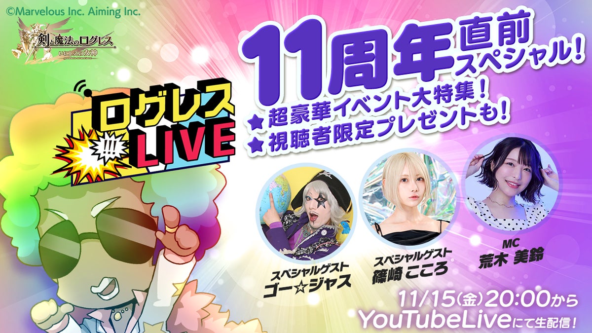 また、11月15日には、イベント情報満載の「ログレスLIVE」が放送予定で、ゴー☆ジャスさん、篠崎こころさん、荒木美鈴さんが出演する。