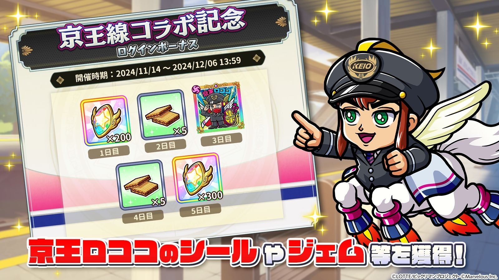 シールコレクションRPG『ビックリマン・ワンダーコレクション』で、京王電鉄とのコラボイベント「周遊!夢運ぶ京王線編」が2024年11月14日~11月29日まで開催されます。