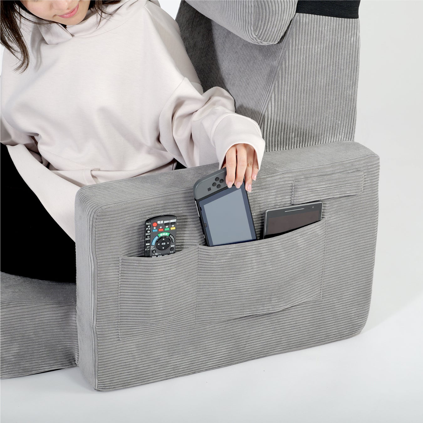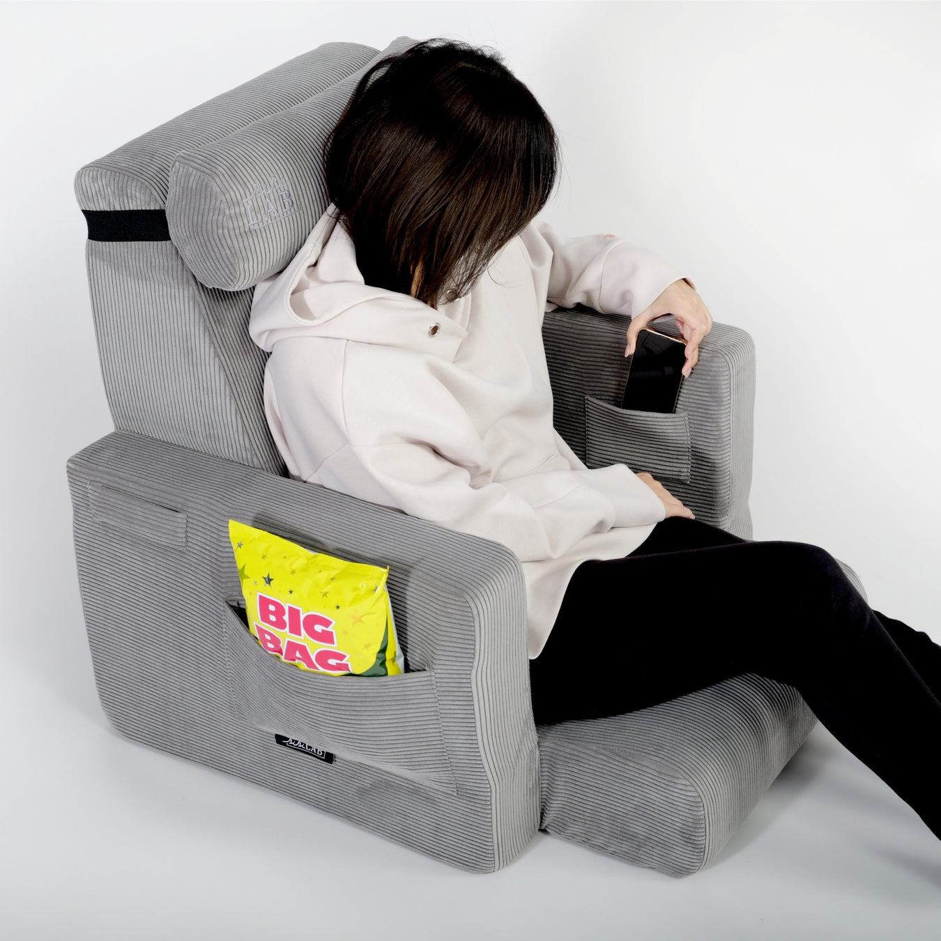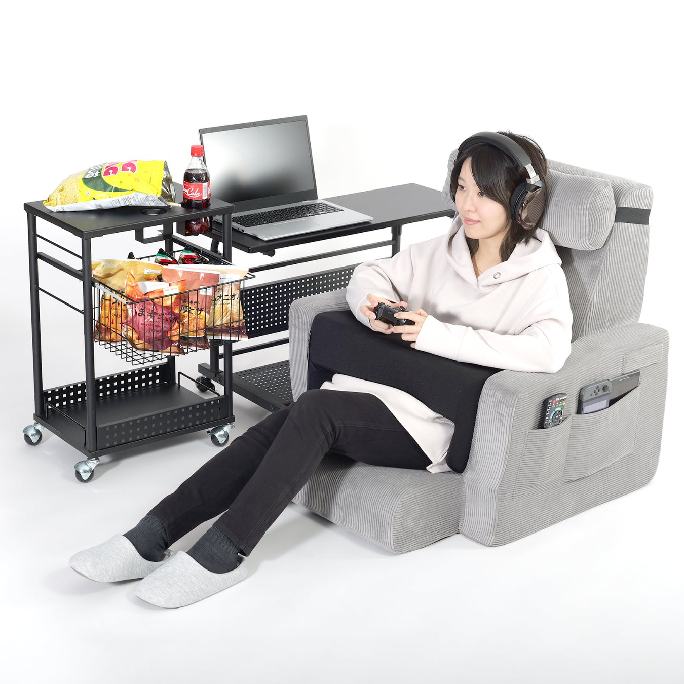 スマホやTVゲーム、ゲームパッドでのプレイにも最適で、お菓子やゲーム機などを収納できるポケットも付いています。