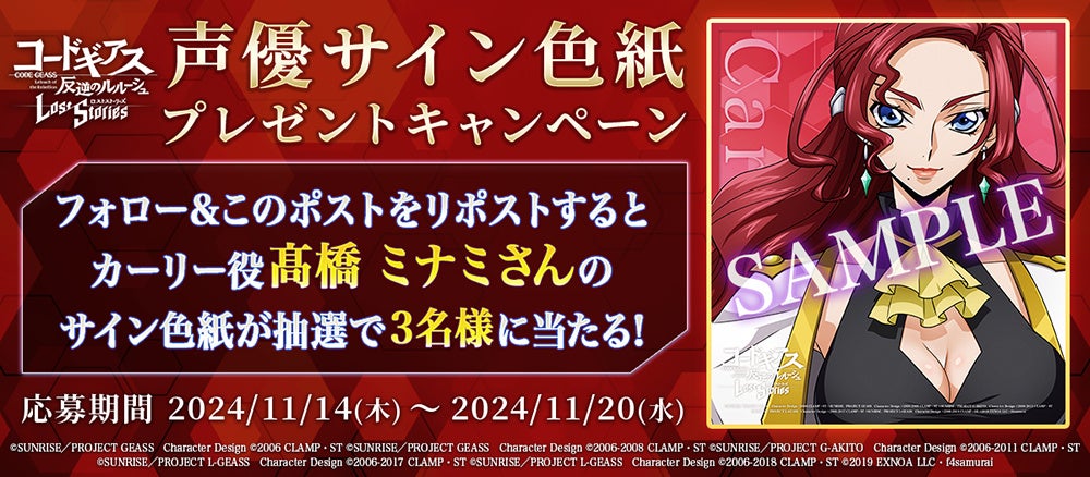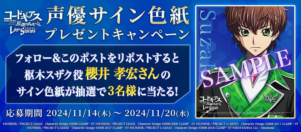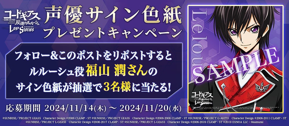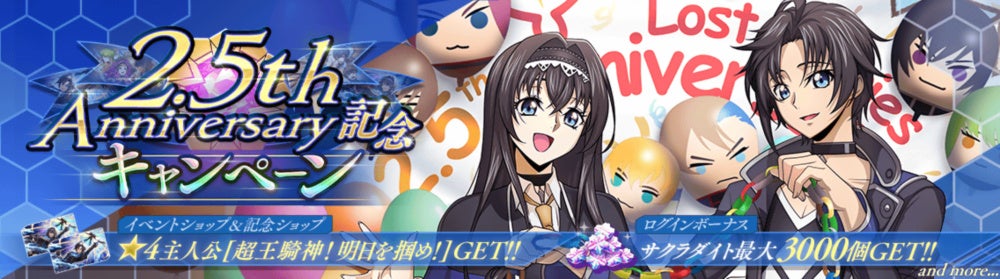 スマホ・PC向けゲーム『コードギアス 反逆のルルーシュ ロストストーリーズ』(ロススト)がリリース2.5周年を迎え、2024年11月14日から大規模なアニバーサリーキャンペーンを開催中。