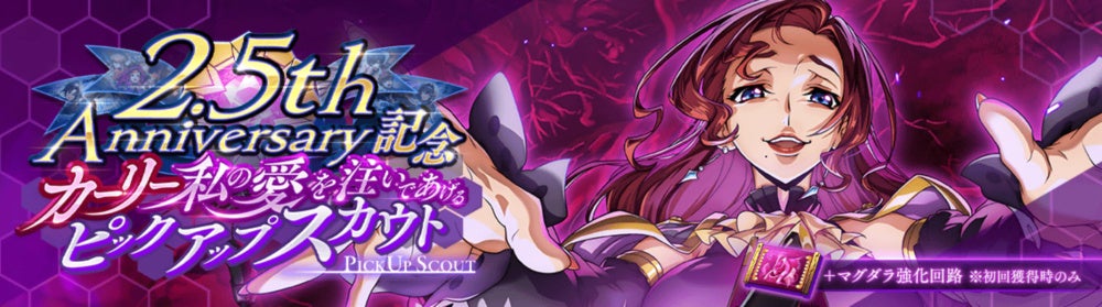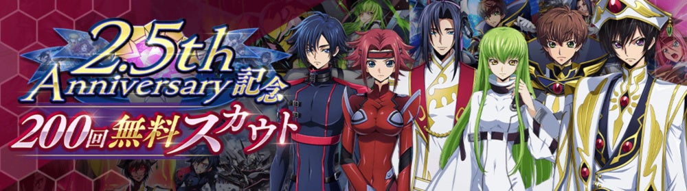 - リリース2.5周年記念キャンペーンとして、最大200回無料スカウトや豪華ログインボーナスを実施