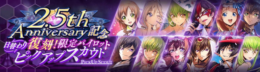 さらに、ルルーシュ、スザク、C.C.といった人気キャラクターのピックアップスカウトや、限定パイロットの復刻スカウトも開催。
