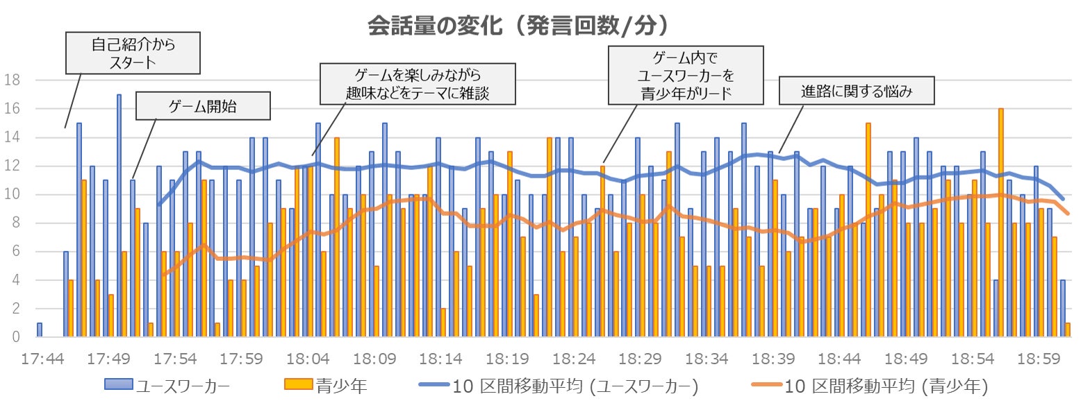実験の結果、ゲームを通じて自然な会話が成立し、青少年がプライベートな話題に触れるなど、関係構築にゲームが有効である可能性が示唆されました。