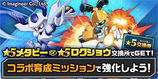 ログインで★5メタビーまたは★5ロクショウが選べ、コラボ召喚では★6を含む様々なメダロットが登場します。
