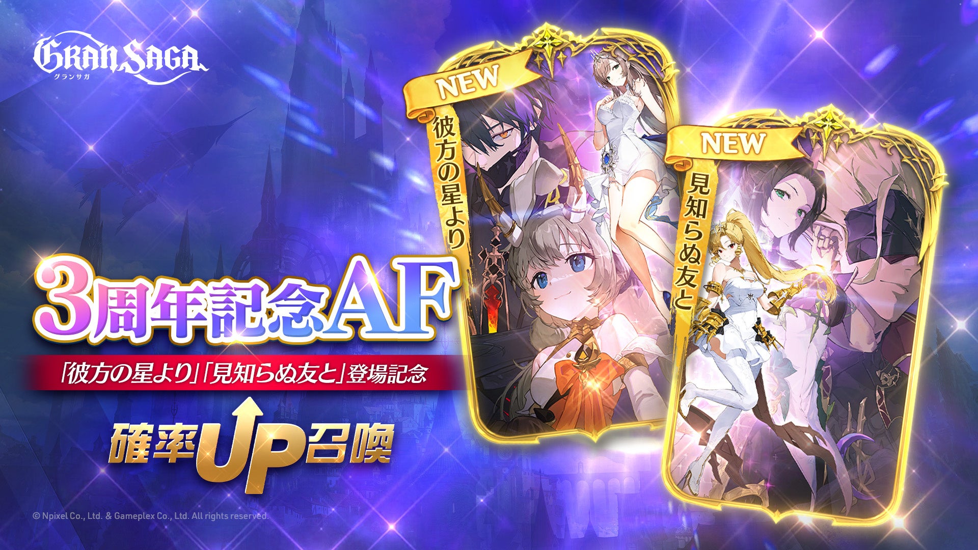 さらに、ロア、3周年記念AFの確率UP召喚、3周年記念衣装、シーズンパス「グランナイツの旅路」、3周年記念スペシャルログインボーナスなども開催され、盛りだくさんの内容となっています。