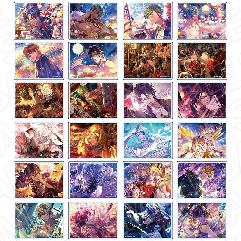 ホログラムカード(全24種)、ペンタゴンカンバッジ(全24種)、ミニアクリルブロック(全24種)、デカキーホルダー(全17種)、くるくるアクリルスタンド(全17種)、デカアクリルスタンド(全17種)など、バラエティ豊かなラインナップです。