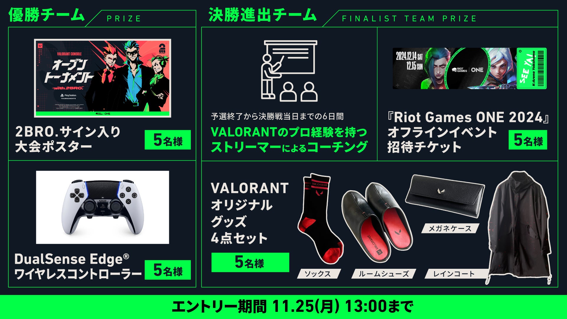 - PlayStation 5版VALORANTのオンライン・オフライン統合型大会「Riot Games ONE VALORANTコンソール オープントーナメント with 2BRO.」開催