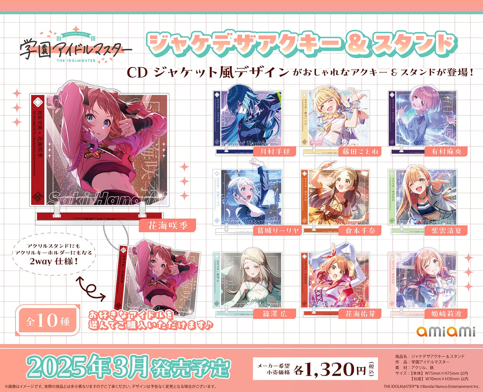 フィギュア&ホビー通販大手『あみあみ』が、『学園アイドルマスター』の関連グッズとして、「ペアアクリルスタンド Vol.1」と「ジャケデザアクキー&スタンド」を2025年3月発売予定です。
