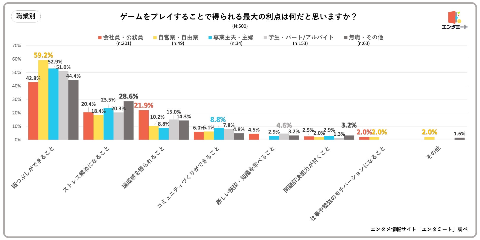 この調査は、ゲームの利用目的が年代や職業によって異なることを示唆している。