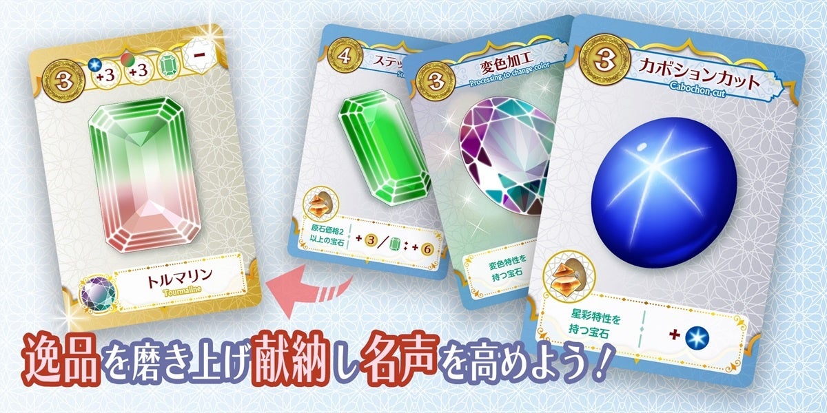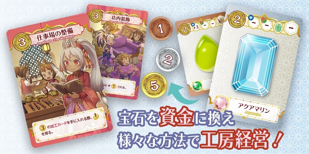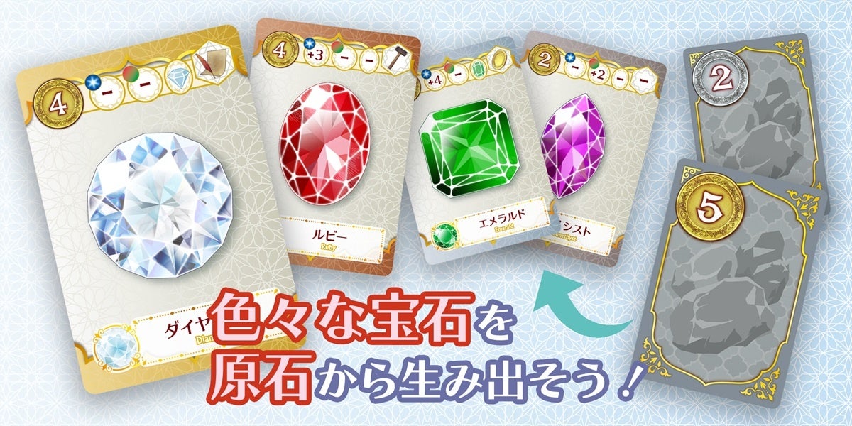 - 原石から宝石を生み出し、資金を得て工房を経営するボードゲーム