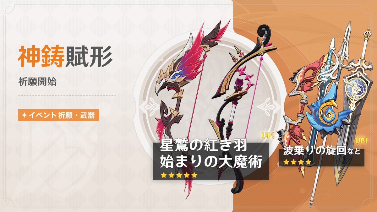 イベント「アニマルトゥギャザー」では原石などの報酬を獲得でき、「スピリットを求めしウォーベン」では限定★4武器「片手剣・厄水の災い」を入手可能です。