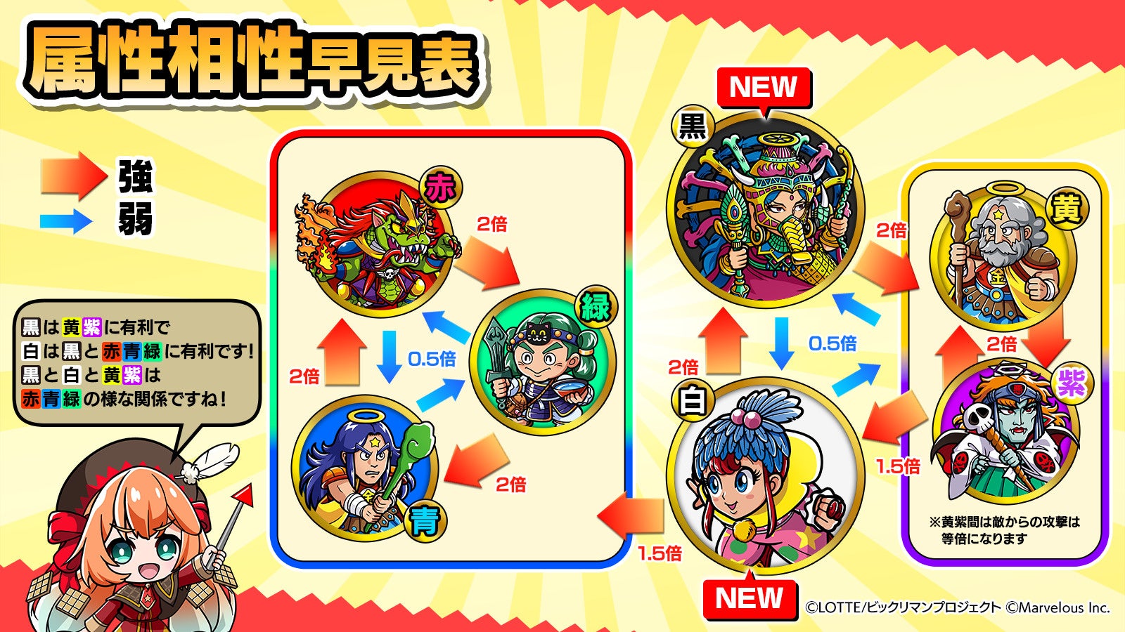 さらに、「黒属性」と「白属性」が追加され、属性相性による戦略性が深まりました。