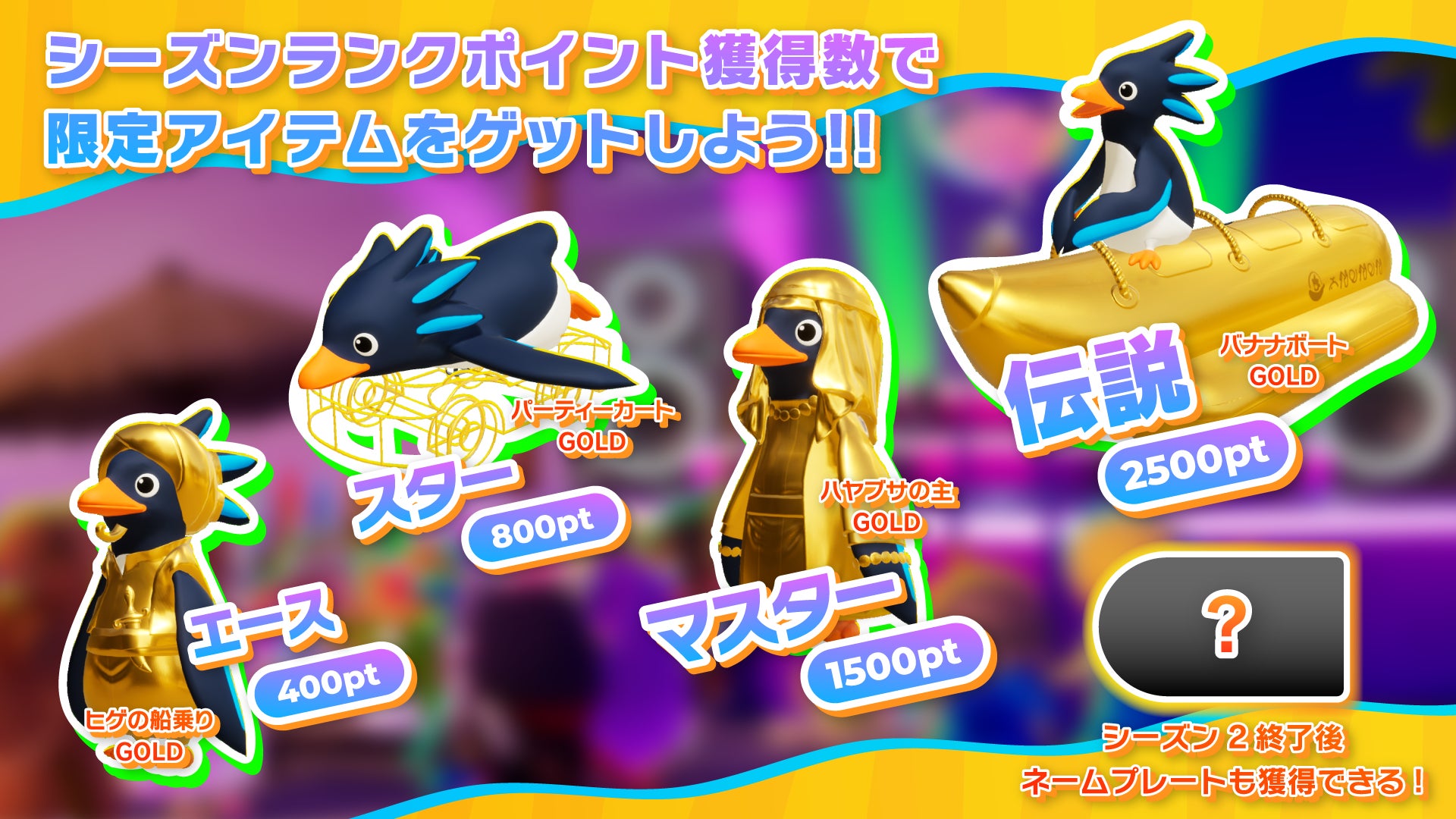 - 『Faaast Penguin』シーズン2配信開始(新ワールド、新アイテム、ランクシステム改善)