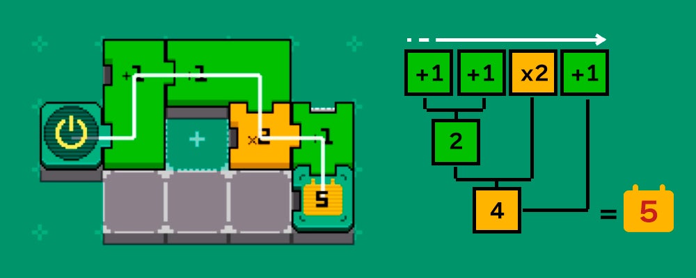 プレイヤーはパズルのピースを繋いで電力を動力炉に送ることを目的とし、四則演算を駆使してクリアを目指します。