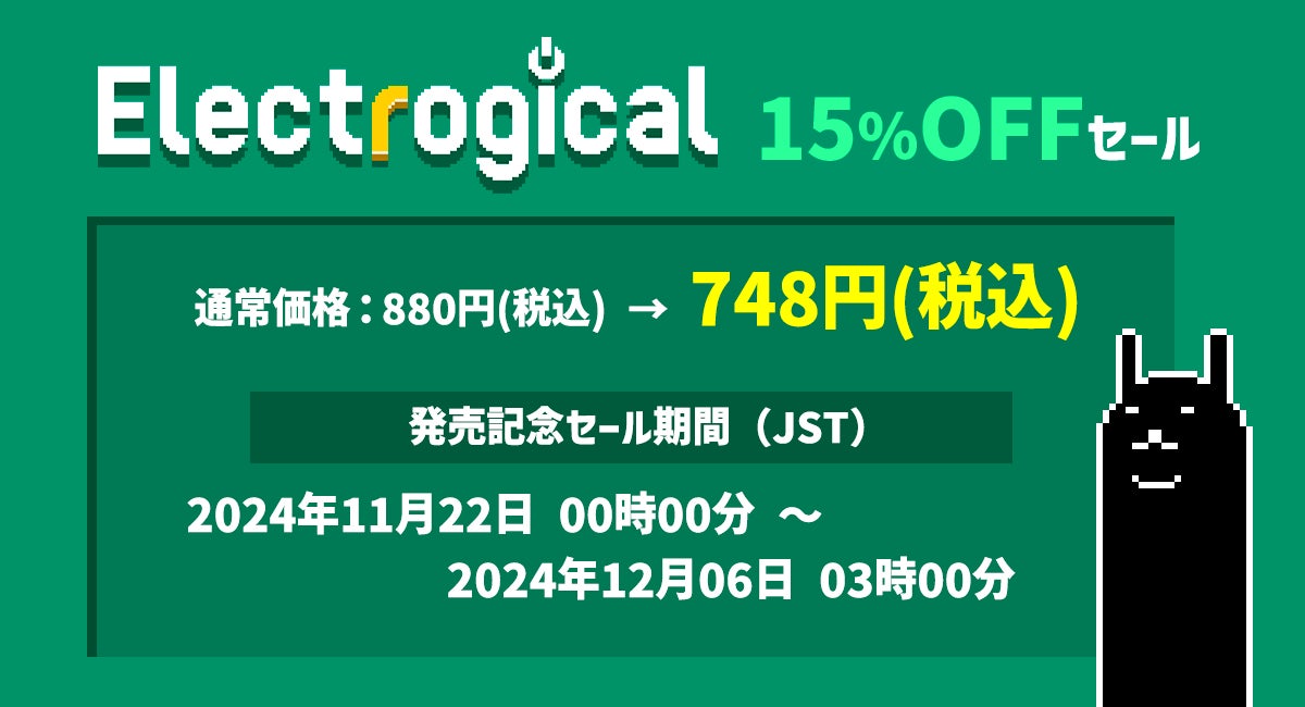 株式会社Phoenixxは、四則演算通電パズルゲーム『Electrogical』のSteamアーリーアクセス版を2024年11月22日に配信開始しました。