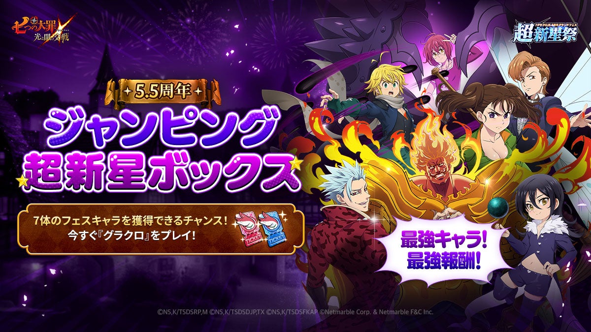 スマホゲーム『七つの大罪 ~光と闇の交戦~』(グラクロ)の5.5周年を記念した「超新星祭」が開催されます。