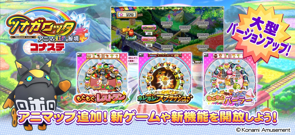 株式会社コナミアミューズメントは、PCやスマートフォンで楽しめる「コナステ メダルコーナー」にて、『ツナガロッタ アニマと虹色の秘境 コナステ』が大型バージョンアップしました。