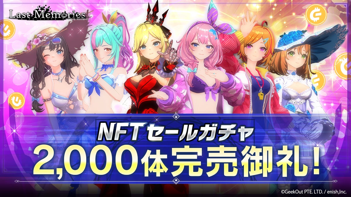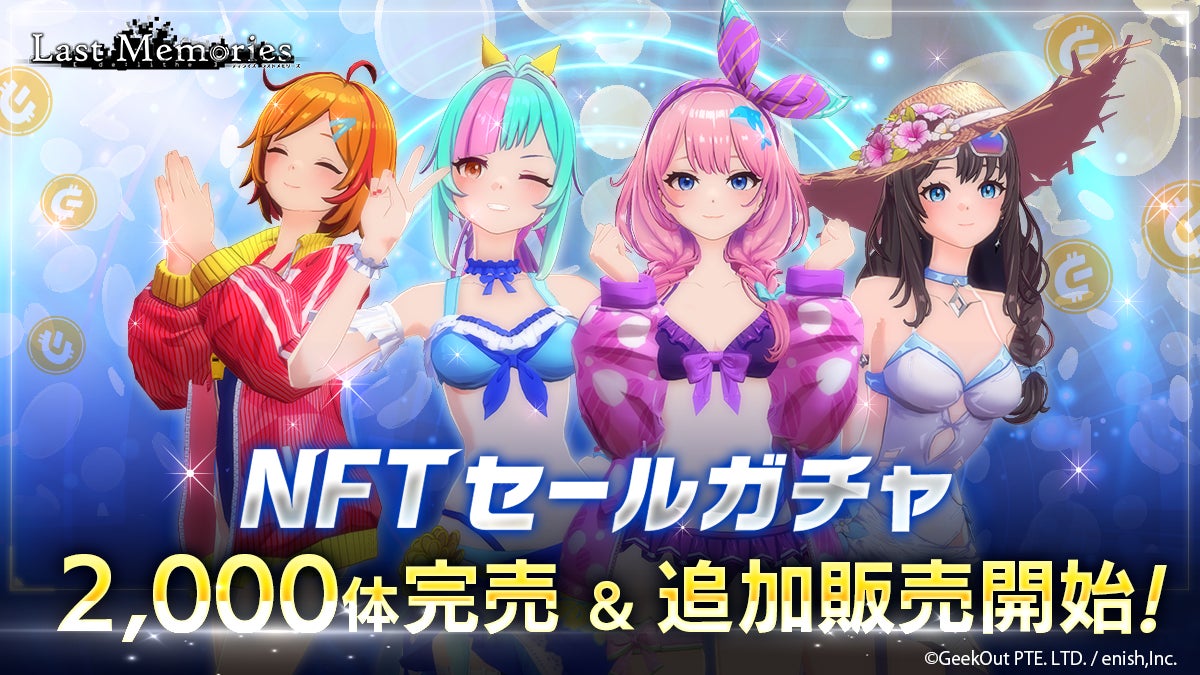 株式会社enishとGEEKOUT PTE. LTD.が共同開発中のモバイルゲームクオリティのブロックチェーンゲーム『De:Lithe Last Memories』において、1体1万円のNFTドール2,000体が完売したと発表されました。