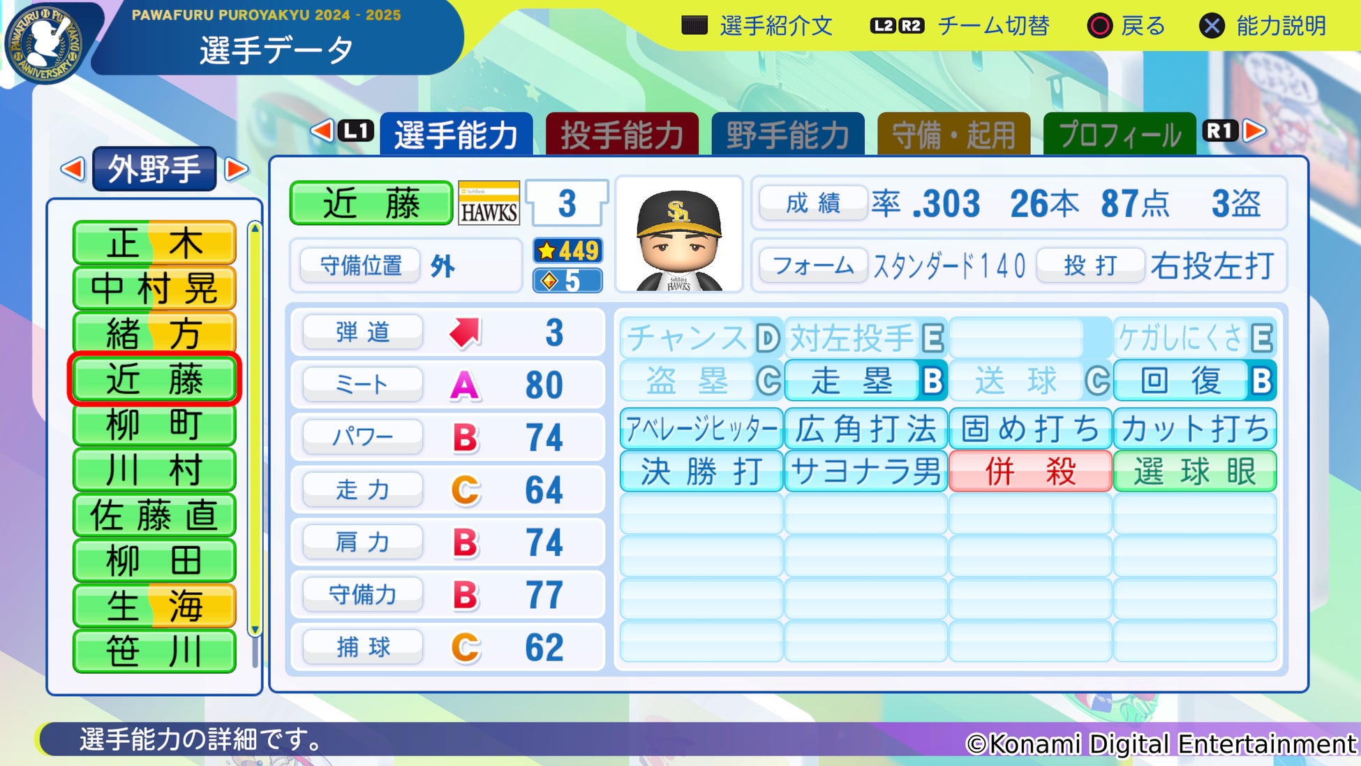 巨人・井上温大選手や福岡ソフトバンク・近藤健介選手など、複数の選手の能力値が最新のデータに修正されています。