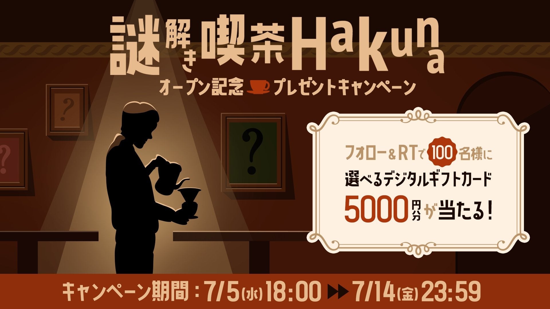 さらに、本日7月5日からは「謎解き喫茶Hakuna」オープンを記念したキャンペーンも実施されています。