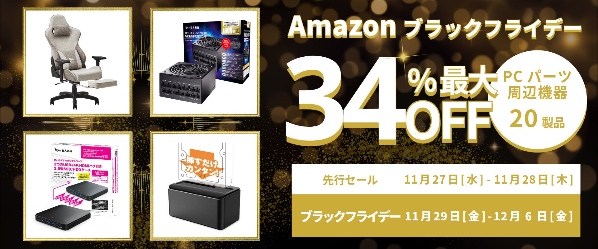 【Amazon先行】玄人志向PCパーツ最大34%OFF!ブラックフライデーセール開始!