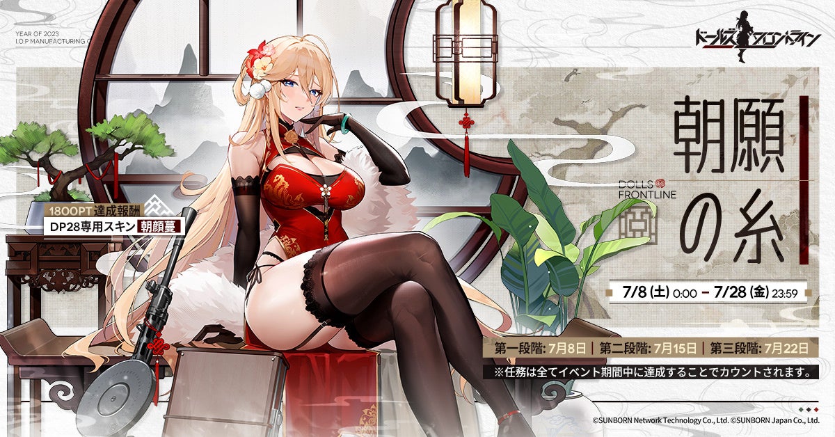 また、7月8日からはスキンが貰えるポイントイベント「朝願の糸」が開催され、報酬としてDP28の限定スキン「朝顔蔓」が獲得できます。