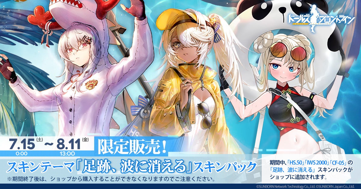株式会社サンボーンジャパンは、スマホ向け戦略型シミュレーションゲーム『ドールズフロントライン』に、夏にぴったりの水着スキンテーマ「足跡、波に消える」を7月15日から追加することを発表しました。