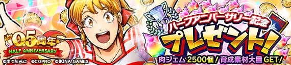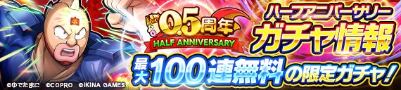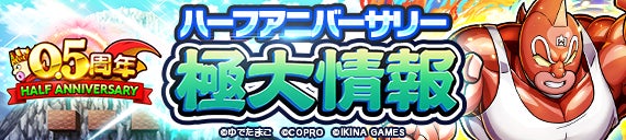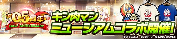 • ハーフアニバーサリー記念で最大100連無料ガチャ、ログインボーナス配布、キン肉マンミュージアムコラボ開催