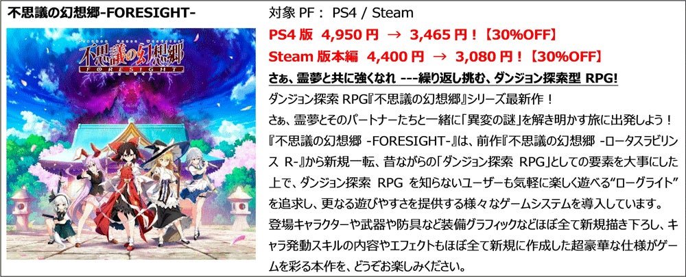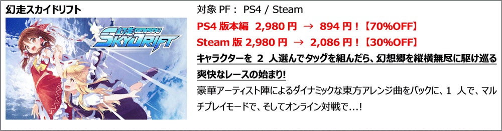 - PhoenixxタイトルがSteam、PlayStation Storeにて最大70%オフセール