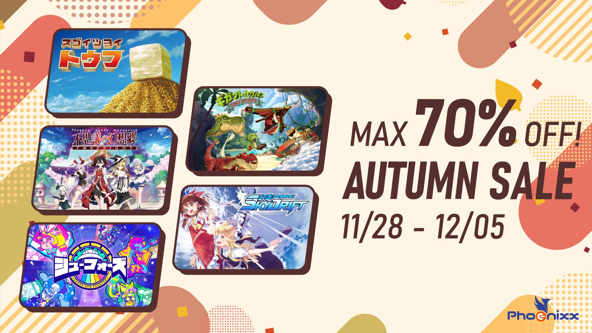 株式会社Phoenixxは、SteamオータムセールおよびPlayStation Storeセールにおいて、自社タイトルを最大70%オフで販売するキャンペーンを実施します。