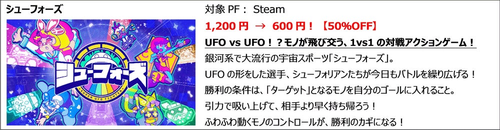 - Steamセール期間:11月28日(木) AM3時~12月5日(木) AM3時、PlayStation Storeセール期間:12月2日(月)~12月20日(金)