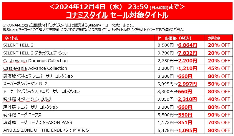 - 最大90%オフのKONAMI BLACK FRIDAY SALE開催中