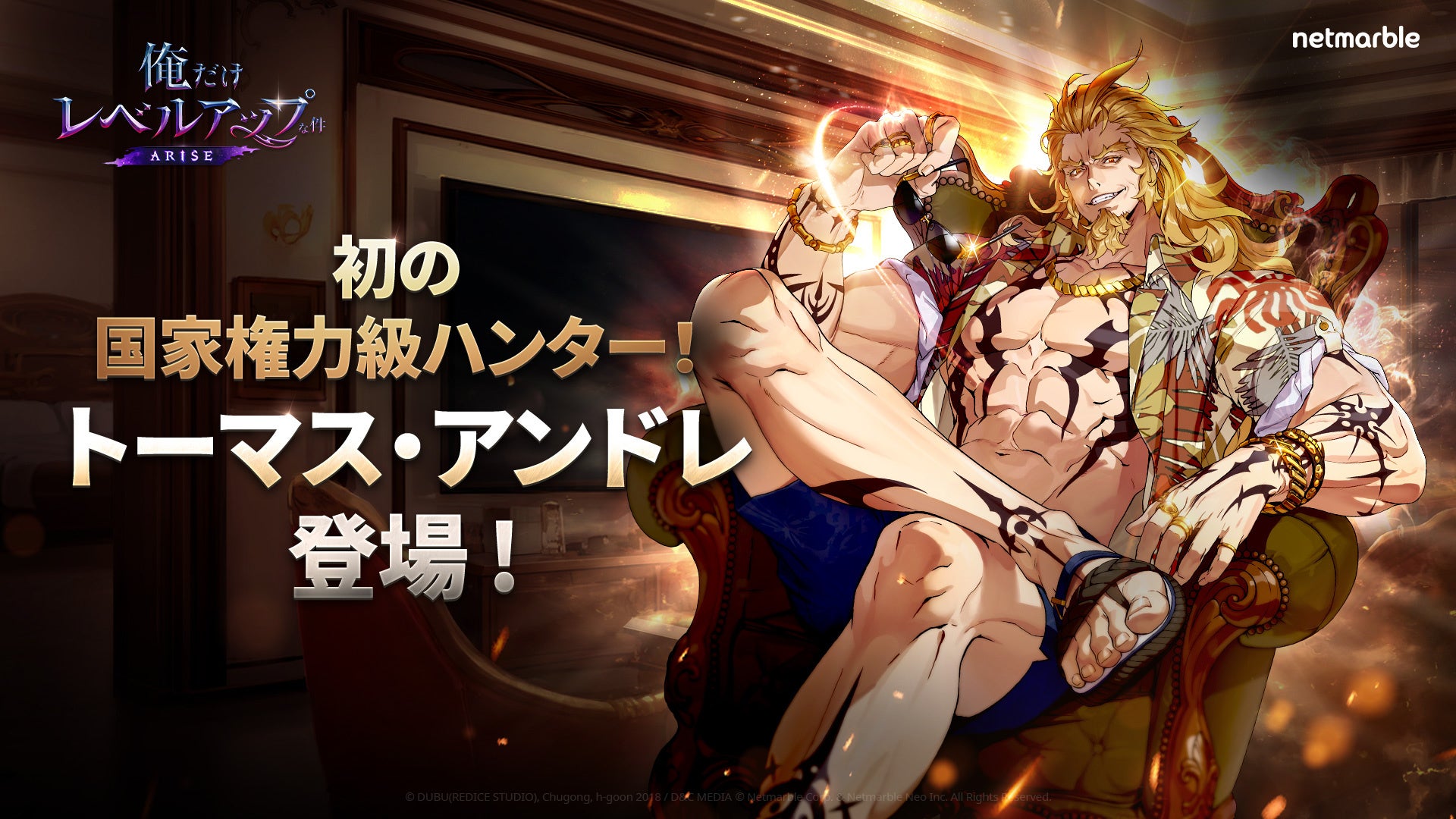 スマホゲーム『俺だけレベルアップな件:ARISE』に、新SSRハンター「トーマス・アンドレ」と新コンテンツ「シミュレーションゲート」が追加されました。