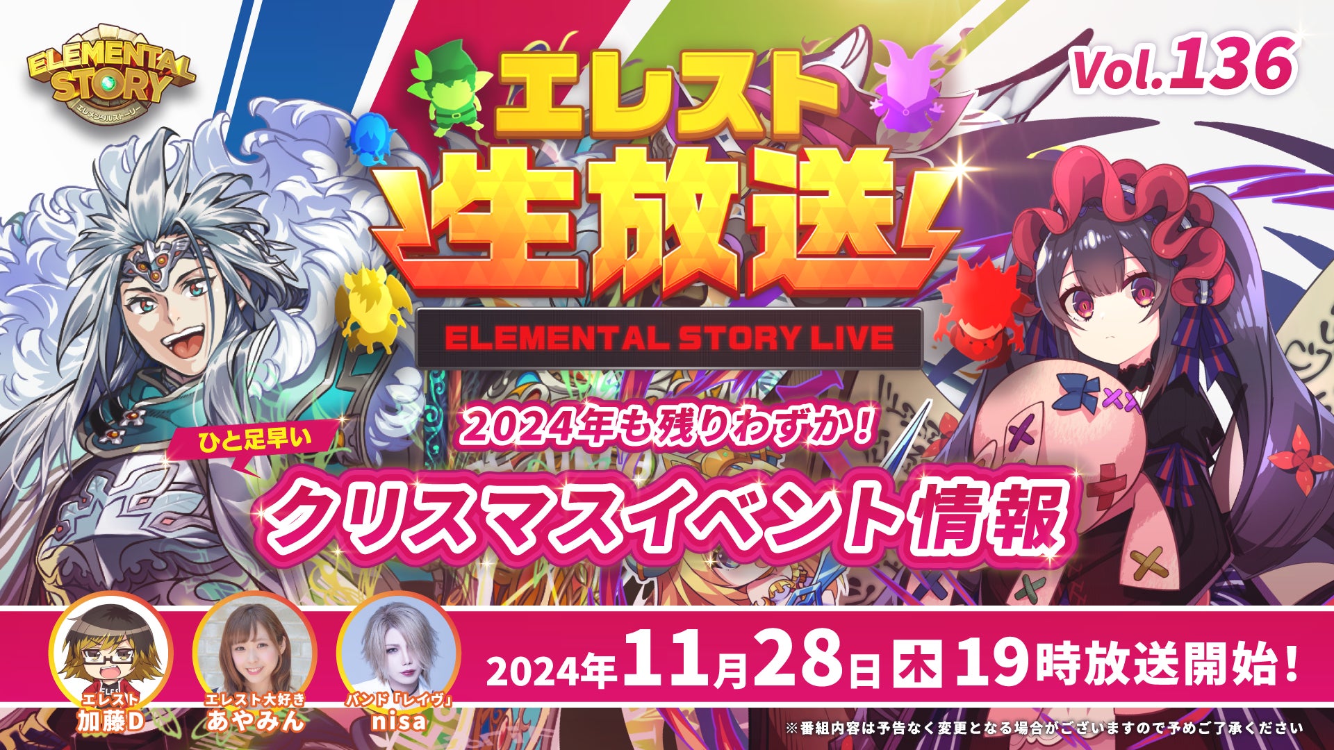- 11月28日(木)19:00から『エレメンタルストーリー』公式生放送vol.136配信