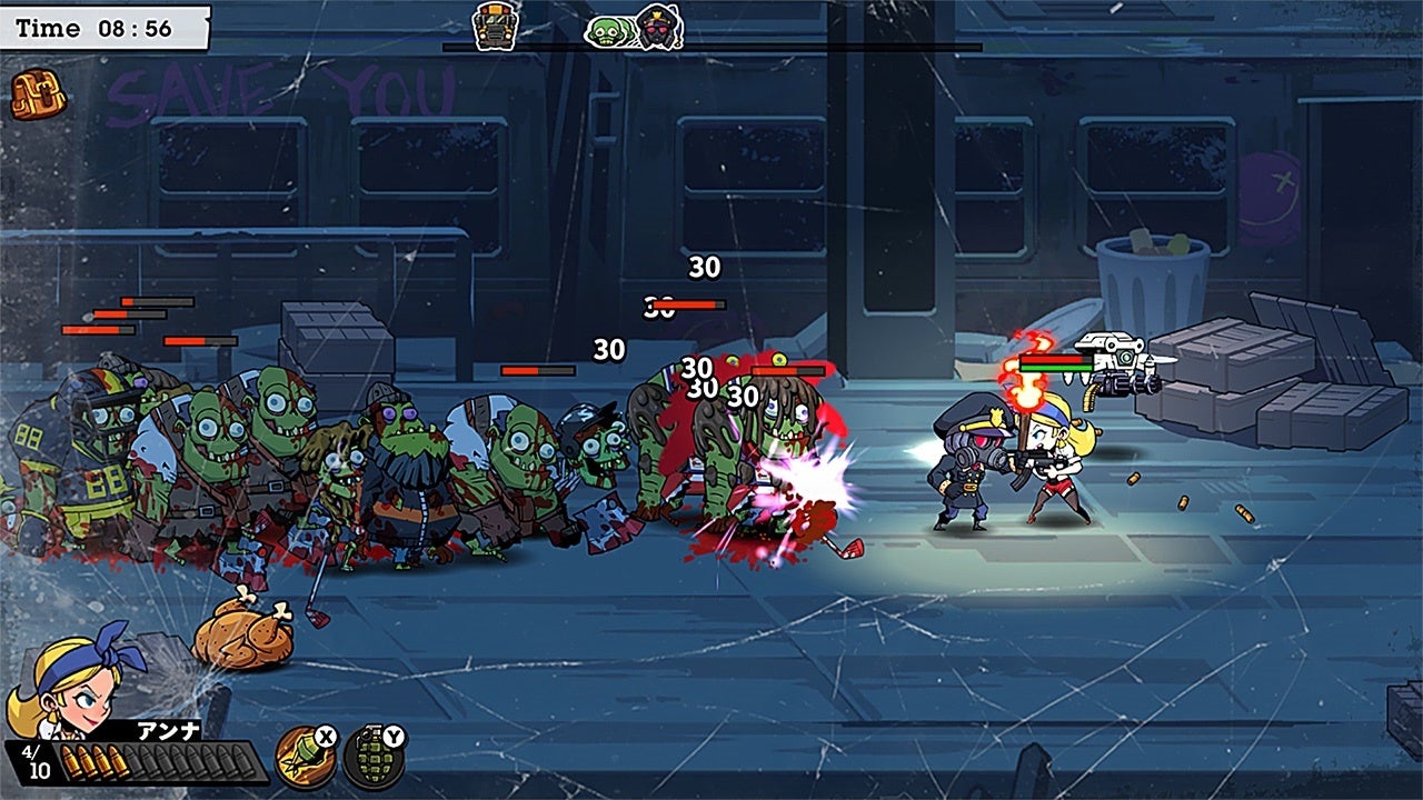 - アーケード感覚のアニメ風のゾンビアクションゲーム