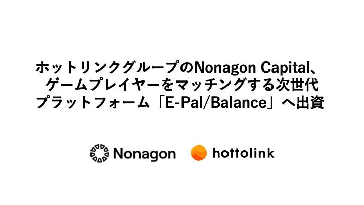 ホットリンクグループのNonagon Capitalが、ゲームプレイヤーマッチングプラットフォーム「E-Pal/Balance」に出資しました。