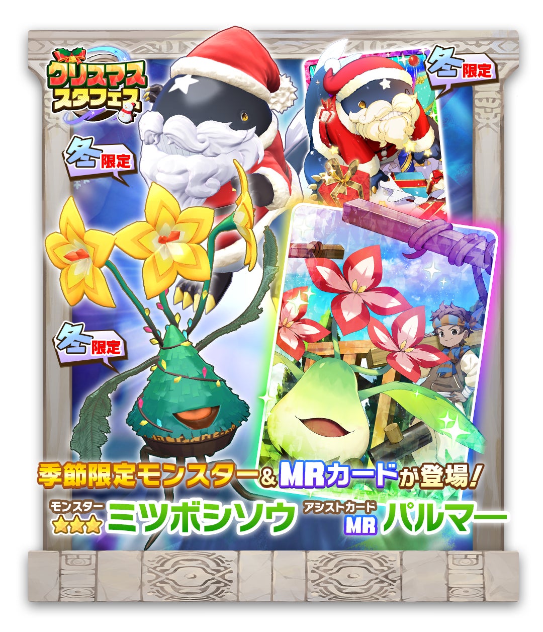 • クリスマススタフェス開催:新モンスター2種、新アシストカード2種が登場