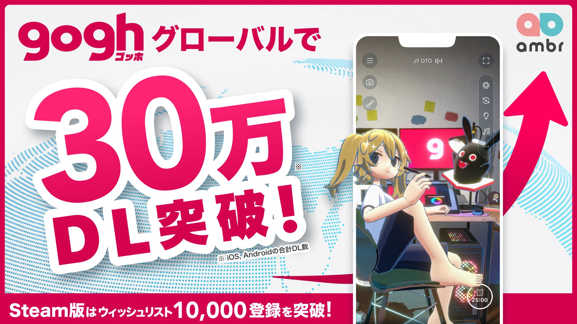 株式会社ambrが開発したアバター作業集中支援アプリ「gogh」がグローバルで30万ダウンロードを突破しました。