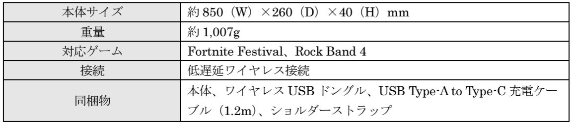 『Riffmaster Wireless Guitar』は、『Fortnite Festival』や『Rock Band 4』に対応し、右利き・左利き両対応、最大36時間の長時間バッテリー、折りたたみ式など利便性に優れた設計です。