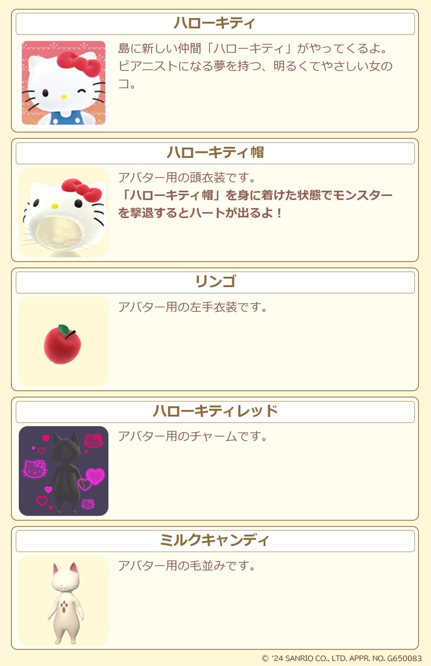 スマホゲーム『モンスターハンターパズル アイルーアイランド』で、ハーフアニバーサリーを記念したサンリオキャラクターズコラボイベント「サンリオキャラクターズ こんにちは!ハローキティです!」が2024年12月4日(水)より開催されます。