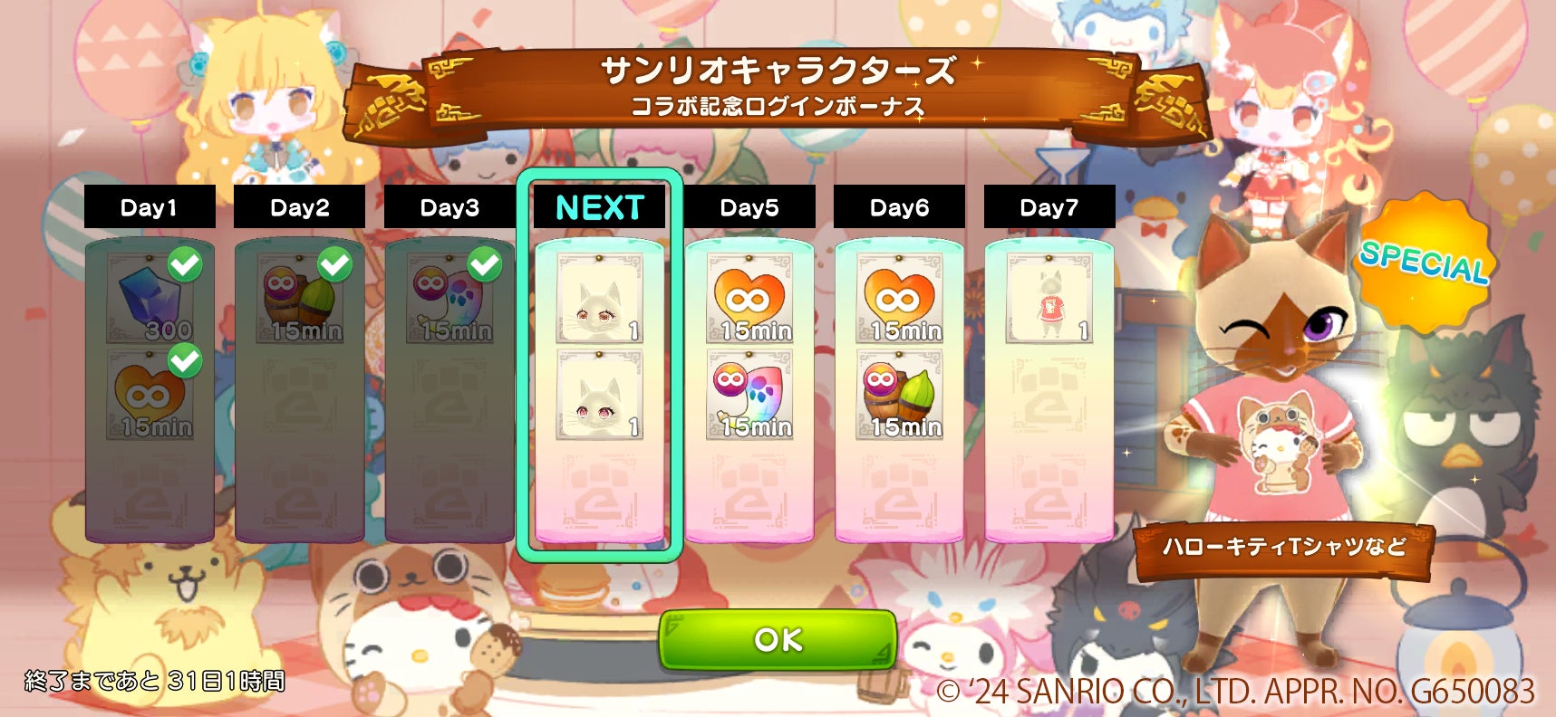 イベントでは、ハローキティなどの新キャラクターや報酬を獲得できます。
