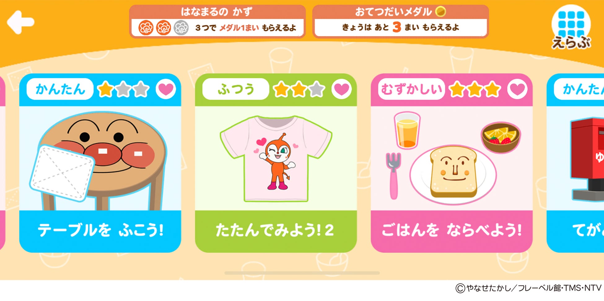 - 「アンパンマン おてつだいできた!」がリニューアルし、60種類以上のお手伝いゲームが遊び放題に