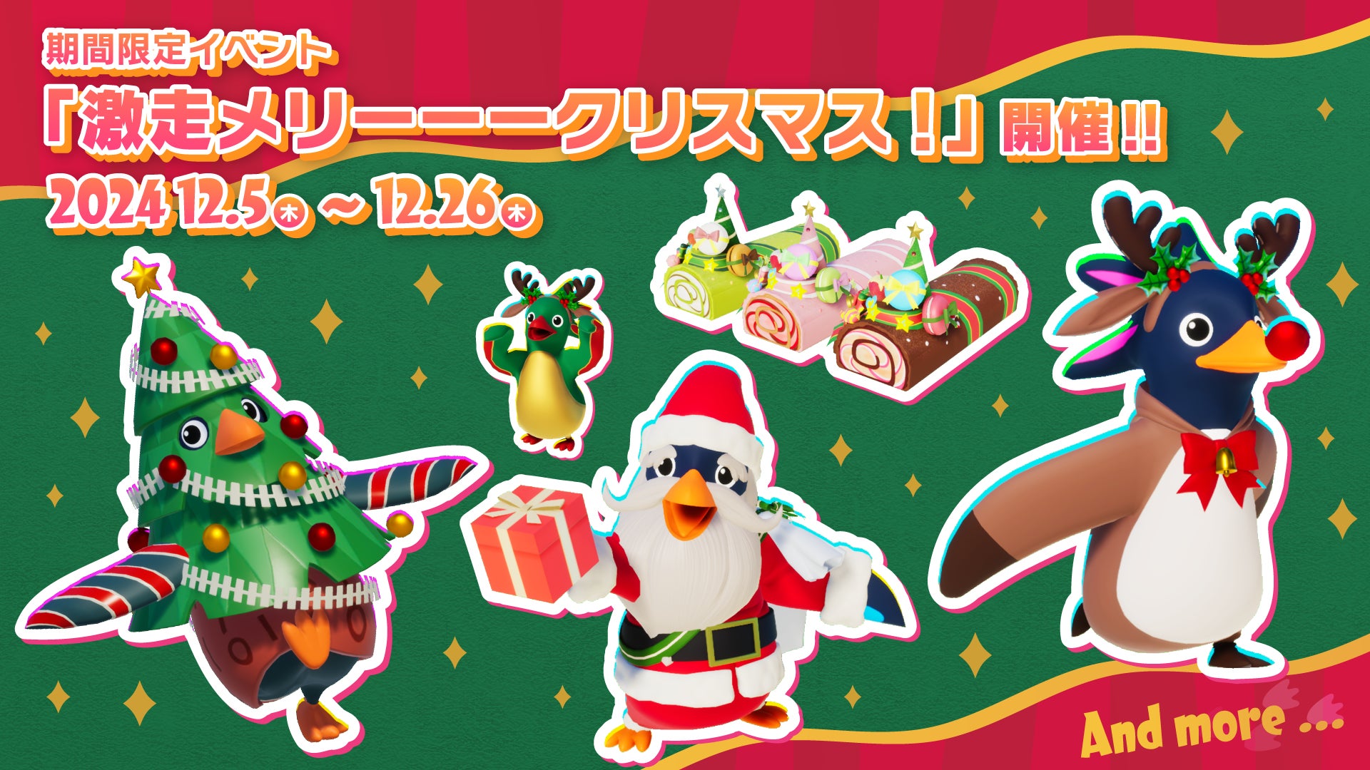 12月5日~26日にはクリスマスイベント「激走メリーーークリスマス!」を開催し、クリスマス限定アイテムやチャレンジが登場します。