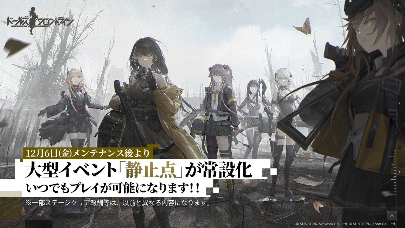 スマホ向け戦略型シミュレーションゲーム『ドールズフロントライン』で、大型イベント「静止点」が12月6日より常設化されます。