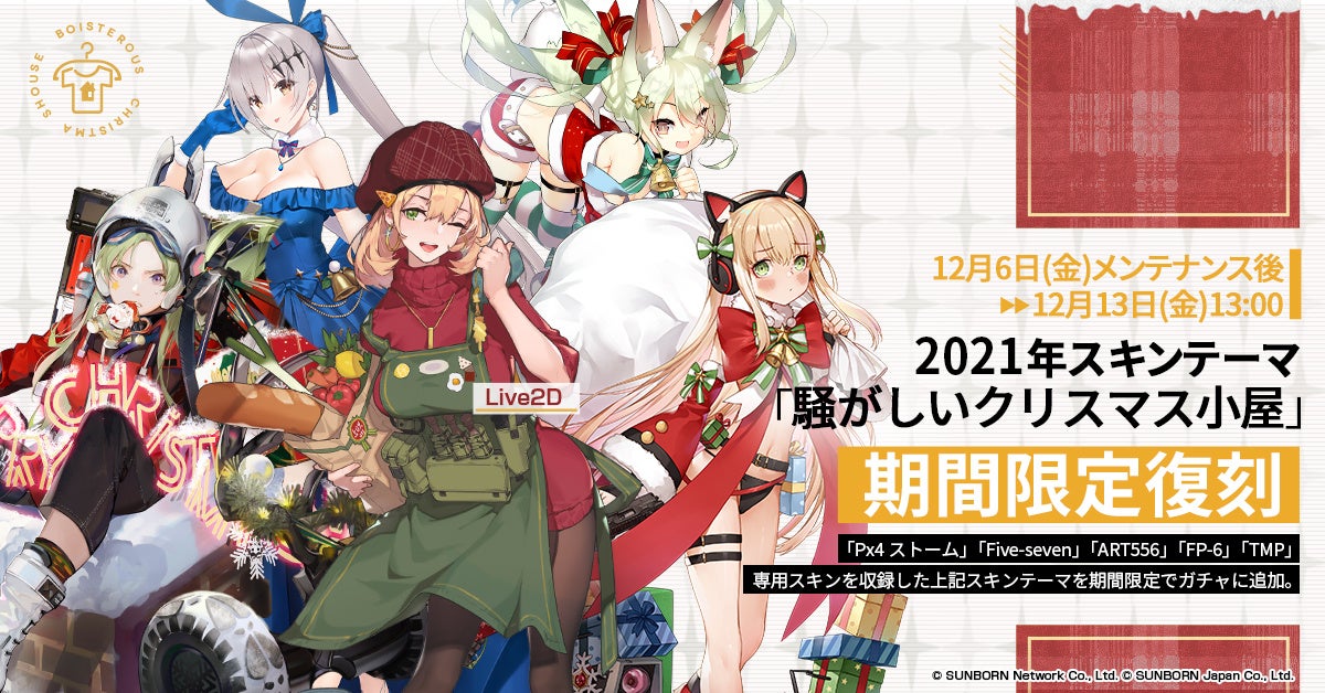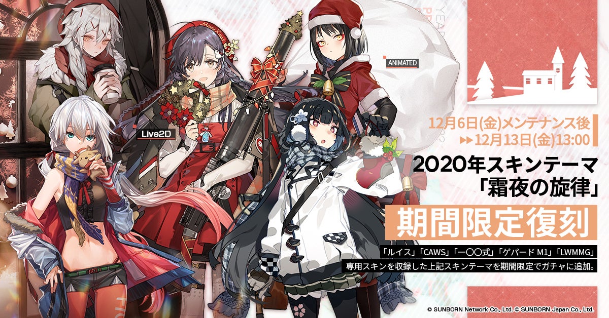 また、12月6日メンテナンス後から13日13時まではクリスマススキン「霜夜の旋律」「騒がしいクリスマス小屋」が復刻されます。
